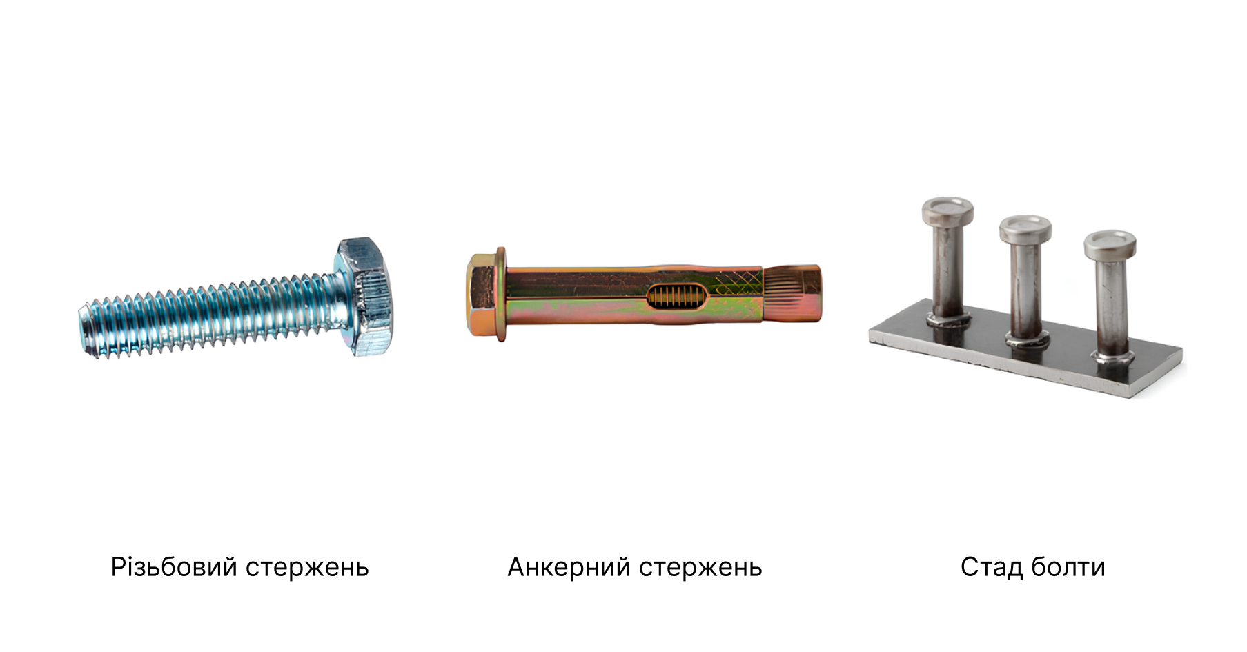 - стад-болти - гладкий стрижень з капелюшком, приварений до несучої основи.
