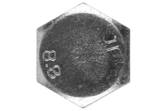Болти маркуються на торцевій поверхні головки, тиснення можуть бути опуклими або заглибленими і включають наступні значення: