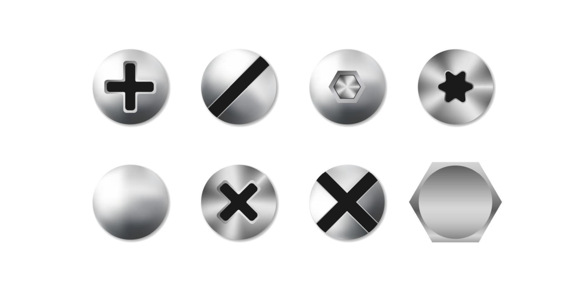 Виробники випускають гвинти з різною формою головки: плоска, кругла, опукла, потайна, напівпотайна.