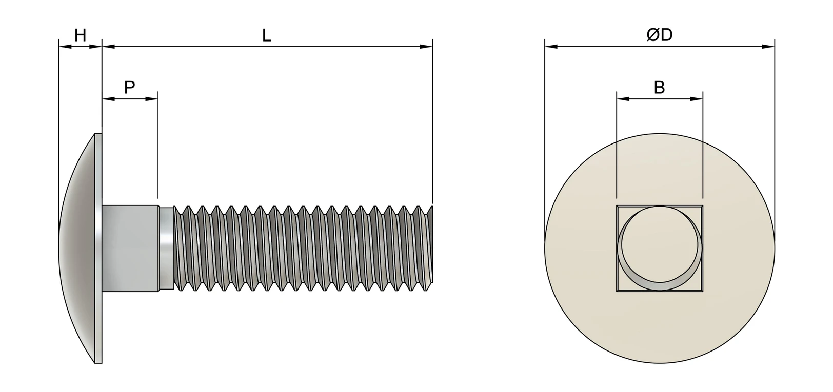 Болти каретки ідеально підходять для застосування, що вимагають міцного та довговічного кріплення як з дерева, так і з металу. Цей тип метричного болта каретки має вал з повним різьбленням і квадратний переріз під головкою, що дозволяє їм фіксуватися на місці при використанні поруч із квадратними отворами або при затягуванні в м'які матеріали, такі як дерево.