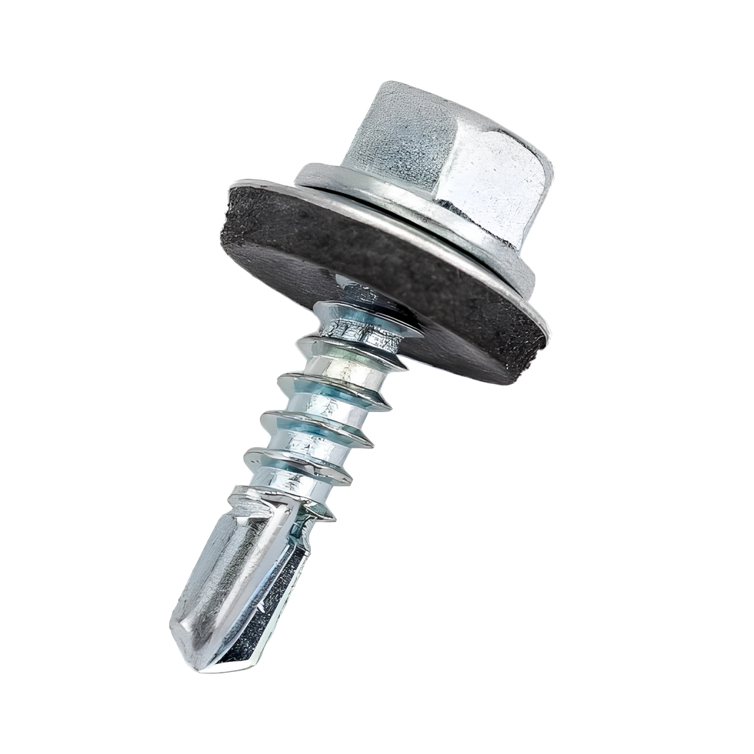Шайба з металу, стійкого до іржі (зазвичай це алюміній чи сталь). Вона допомагає розподіляти тиск на матеріал, коли засвердлюють шуруп. Завдяки цьому EPDM-ущільнювач не покривається тріщинами, а на профнастилі або металочерепиці не залишається вм'ятин (звичайно, якщо ви не перетягнули шуруп).