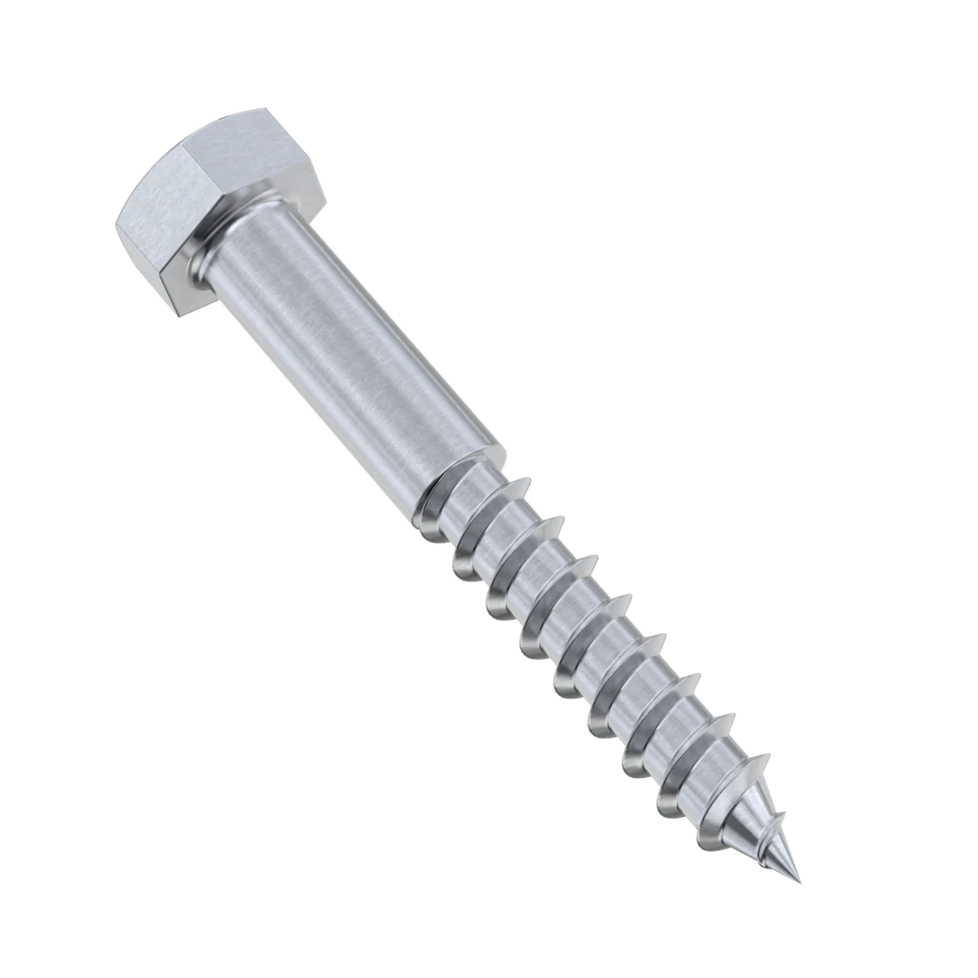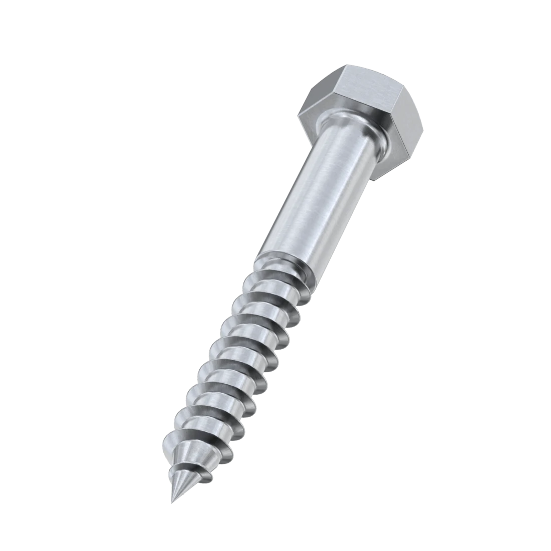DIN 571 Шурупи є стрижнем з неповним великим різьбленням, гладкою частиною і мають головку з шістьма гранями під гайковий ключ.