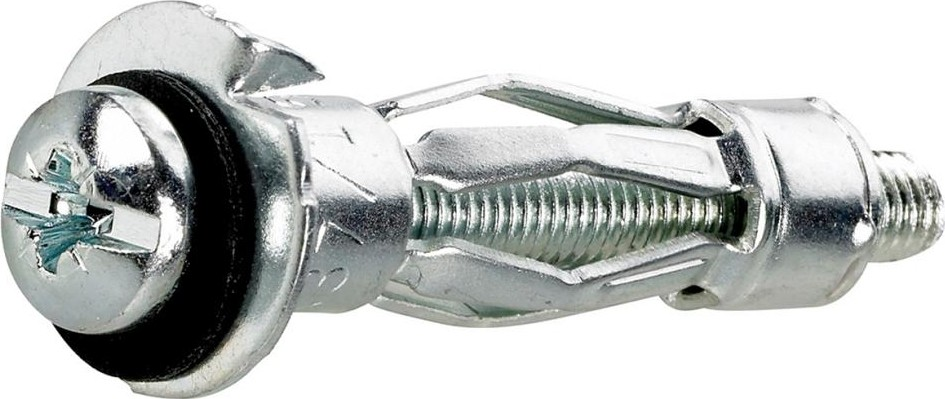 Дюбель Моллі – кріпильний виріб, призначений для кріплення важких конструкцій до порожнистих та листових будматеріалів: плит перекриттів, гіпсокартону та ГВЛ, пиломатеріалів з деревної стружки (ДСП, фанера).