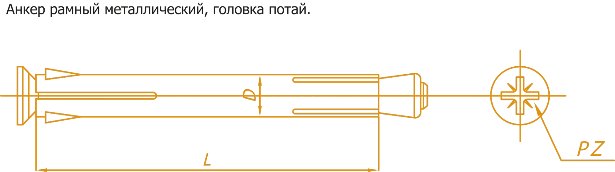 Металевий анкер рамний використовують для наскрізного монтажу. Анкер складається із сталевої розрізаної втулки, гвинта зі шліцем PZ 3 та конусної гайки. Конструкція анкера виконана таким чином, що розклинювання і фіксація його відбувається спочатку в основі, потім в матеріалі, що прикріплюється.