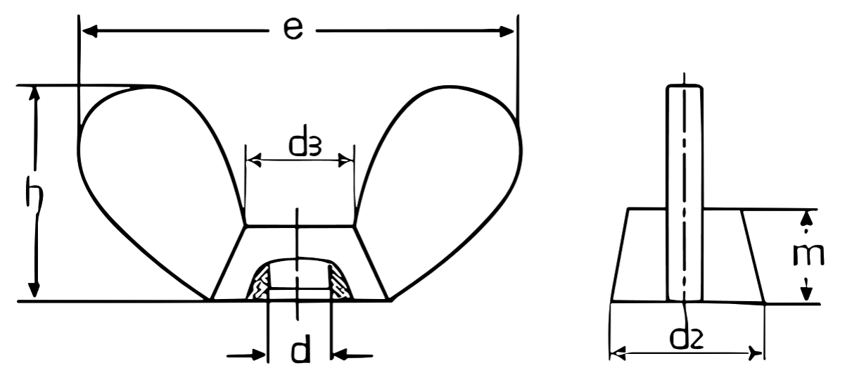 Розміри гайок-баранчиків з округлими пелюстками DIN 315 в мм.