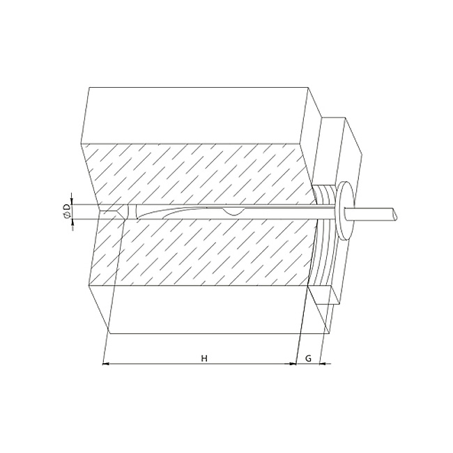 - ударами молотком по стопорному капелюшку, тіло анкера до упору забивається в отвір. На цій стадії завдавати ударів по розпірному клину не можна