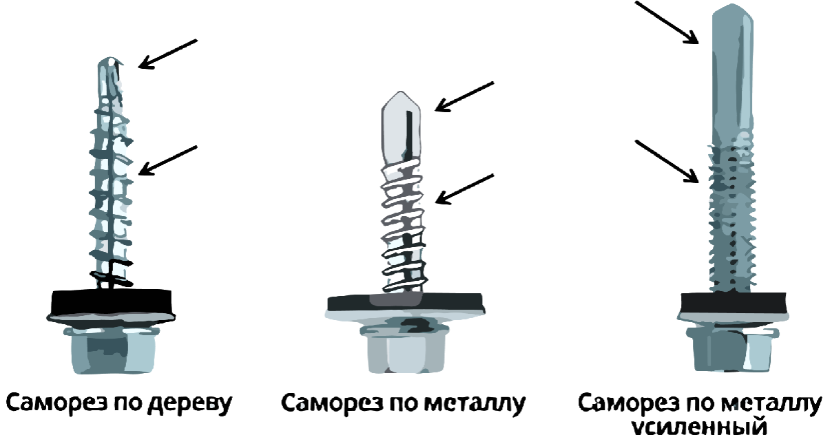 Саморіз має подовжене свердло, за рахунок якого отримало назву "посилений". Такі шурупи застосовуються в місцях, де шурупи зі звичайним буром не здатні "прошити" метал понад 6 мм. Межа максимального свердління металу розрахована до 12 мм. Самонарізи не вимагають попереднього свердління отвору.