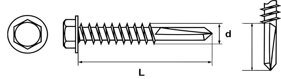 Саморіз з посиленим свердлом або бронебійний шуруп із шестигранною головкою застосовується для швидкого та надійного кріплення вузлів металоконструкції, що несуть підвищене навантаження та потребують особливої міцності, так само його використовують для монтажу листових металів до металевих профілів.