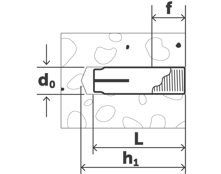 Діаметр якого дорівнює зовнішньому діаметру забивного анкера. Глибина отвору повинна перевищувати глибину установки анкера на 10 мм. При цьому воно має бути повністю відчищене від бетонних відходів свердління за допомогою щітки та спеціального насоса.