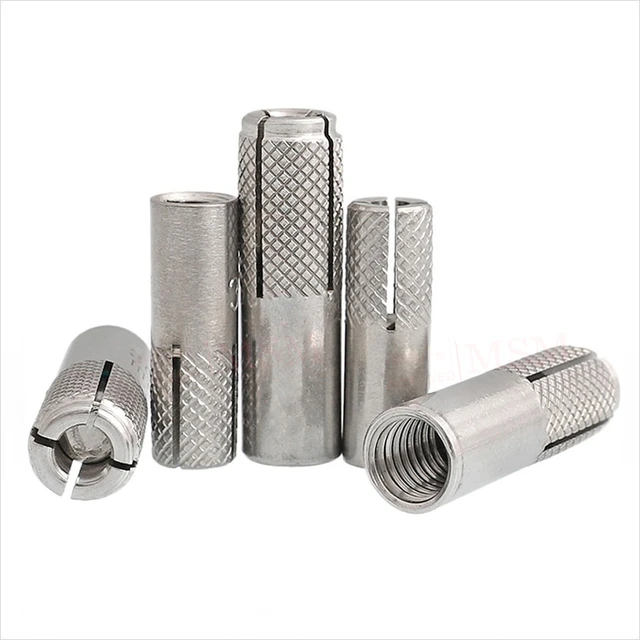 Забивний нержавіючий анкер являє собою металеву втулку, відмінні частини якої: внутрішнє метричне різьблення і зона, що розклинюється для використання в дуеті зі шпилькою, гвинтів або болтом.