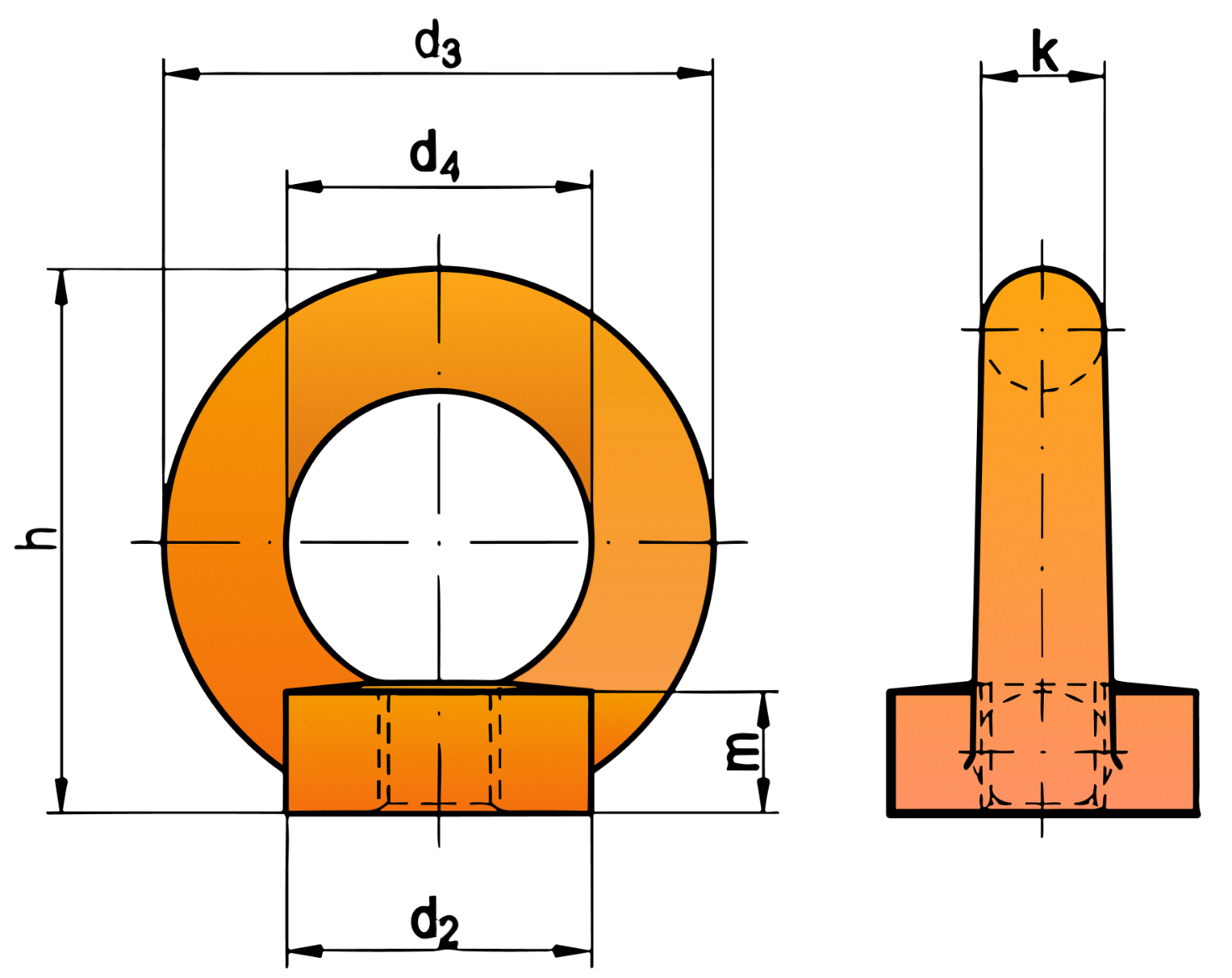 Головні критерії вибору монтажних точок кріплення DIN 582 – це діаметр та крок внутрішнього різьблення, а також максимальне робоче навантаження, здатне довгий час витримувати такелажний елемент. Найбільш ходові типорозміри рим-гайок поставляються діаметром різьблення М6 - М48. Важливим також є внутрішній діаметр кільця, якого відбувається фіксація різних кріпильних елементів.