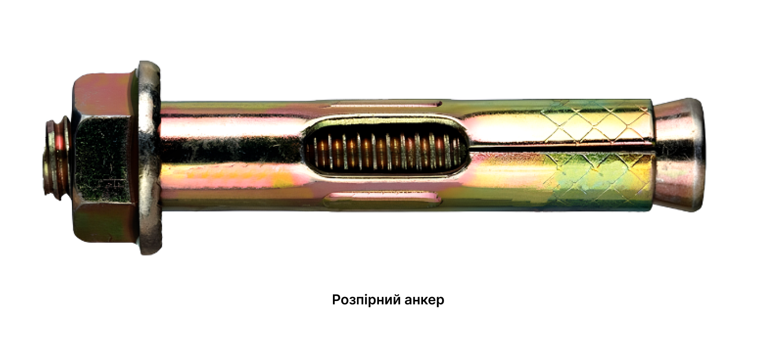 Классический распорный анкерный болт — это шпилька с резьбой, нижний конец которой имеет конусообразную форму, распорная прорезная втулка и прижимная (фланцевая) гайка. Зная устройство, понять, как работает распорный анкер несложно: