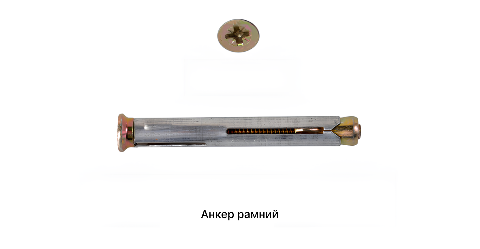 Принципиальное устройство рамного анкера повторяет основные инженерные решения крепежа данного типа. Это гильза с пропилом, в которую помещен винт с резьбой для посадки распорного элемента.