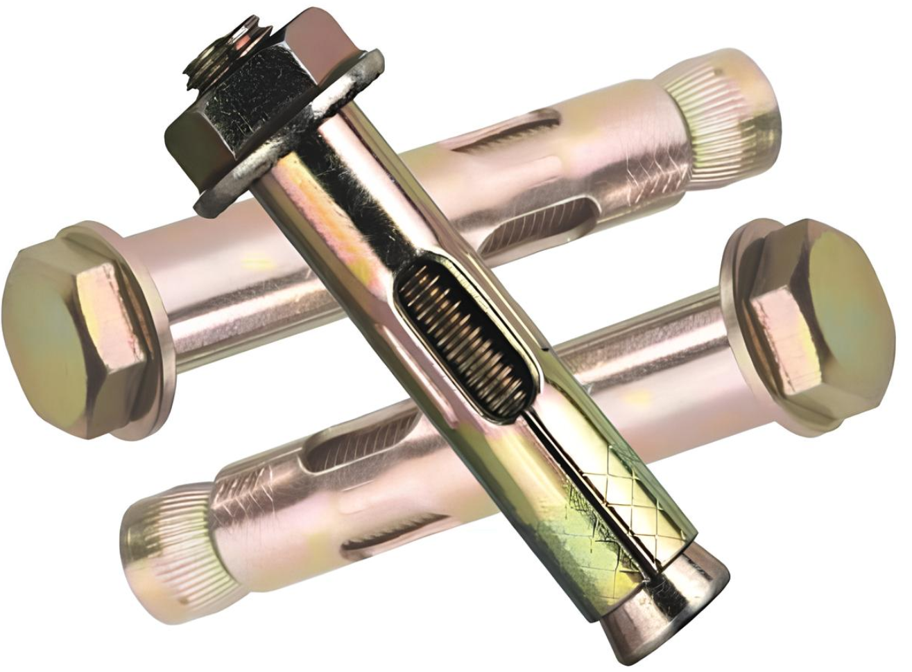 Распорные. Комплексный крепеж, содержащий подвижную втулку, расширяемую при вкручивании болта. Анкер устанавливается в заранее подготовленное отверстие, после чего протягивается.