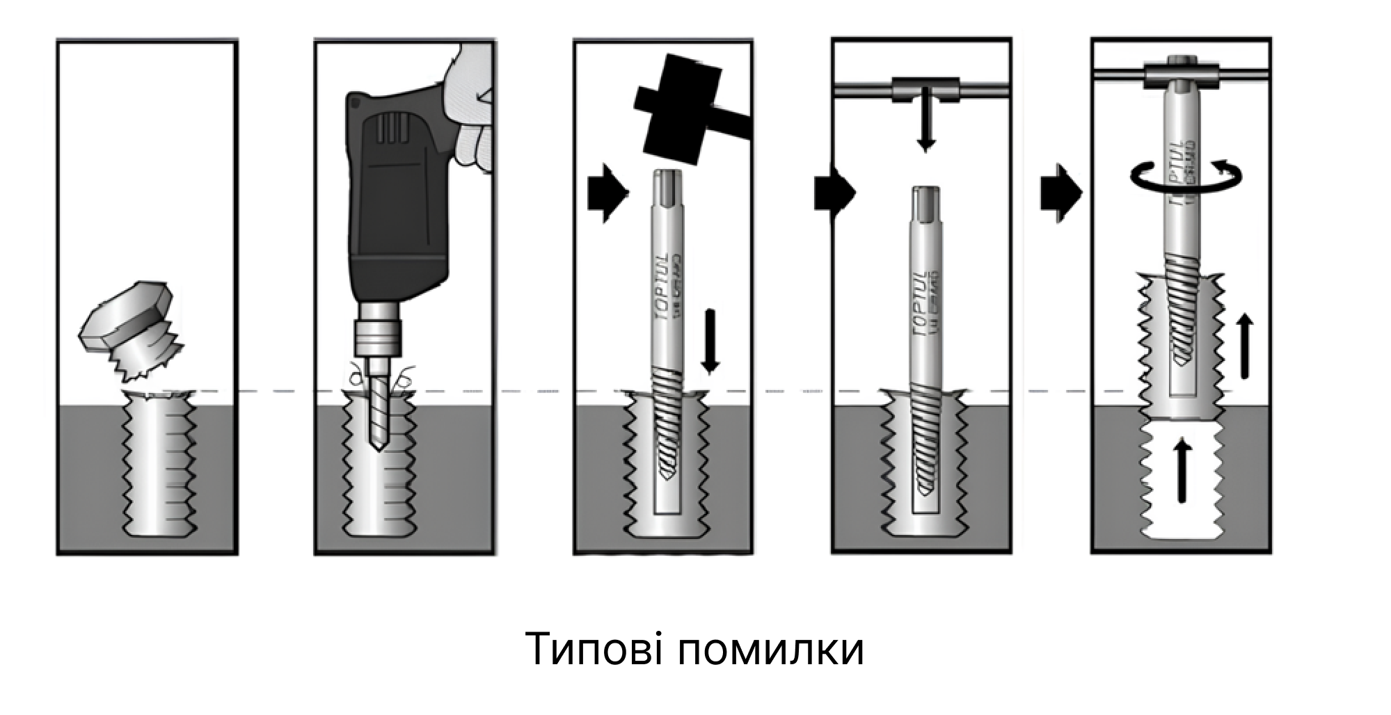 К сожалению, далеко не всегда часть сорванного метиза остается над поверхностью. Намного чаще болт или шпилька ломаются заподлицо с деталью и здесь не обойтись без дрели и набора сверл и метчиков. Следующие рекомендации помогут достать заломыш быстро и без ошибок.