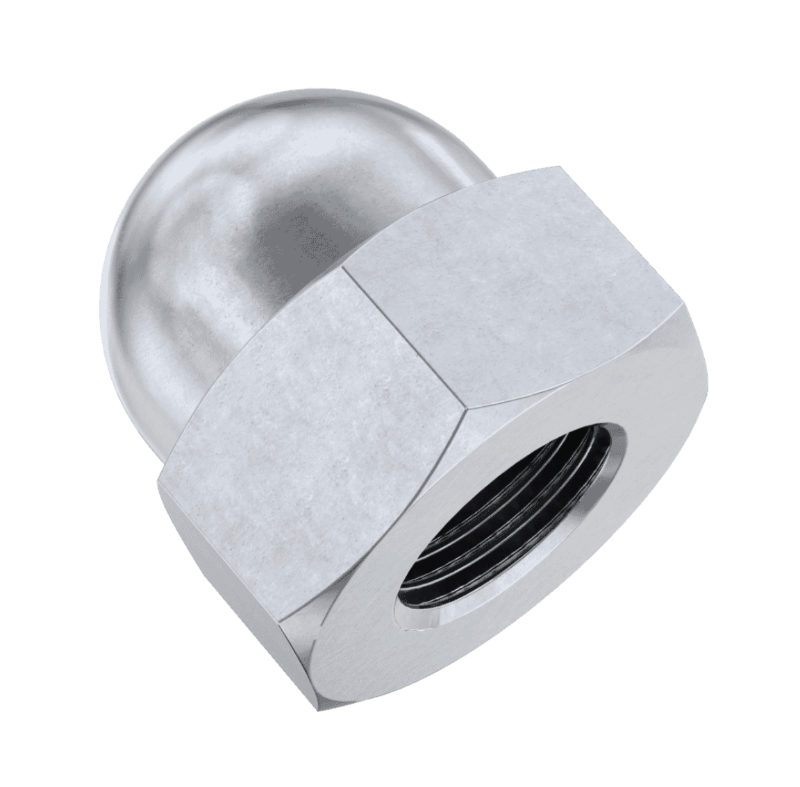 DIN 1587 - гайка высокая колпачковая шестигранная. Колпачок защищает резьбу от механических повреждений, коррозии, а также придаёт изделию эстетичный вид. Применяются совместно с болтами и штангами соответствующего диаметра.