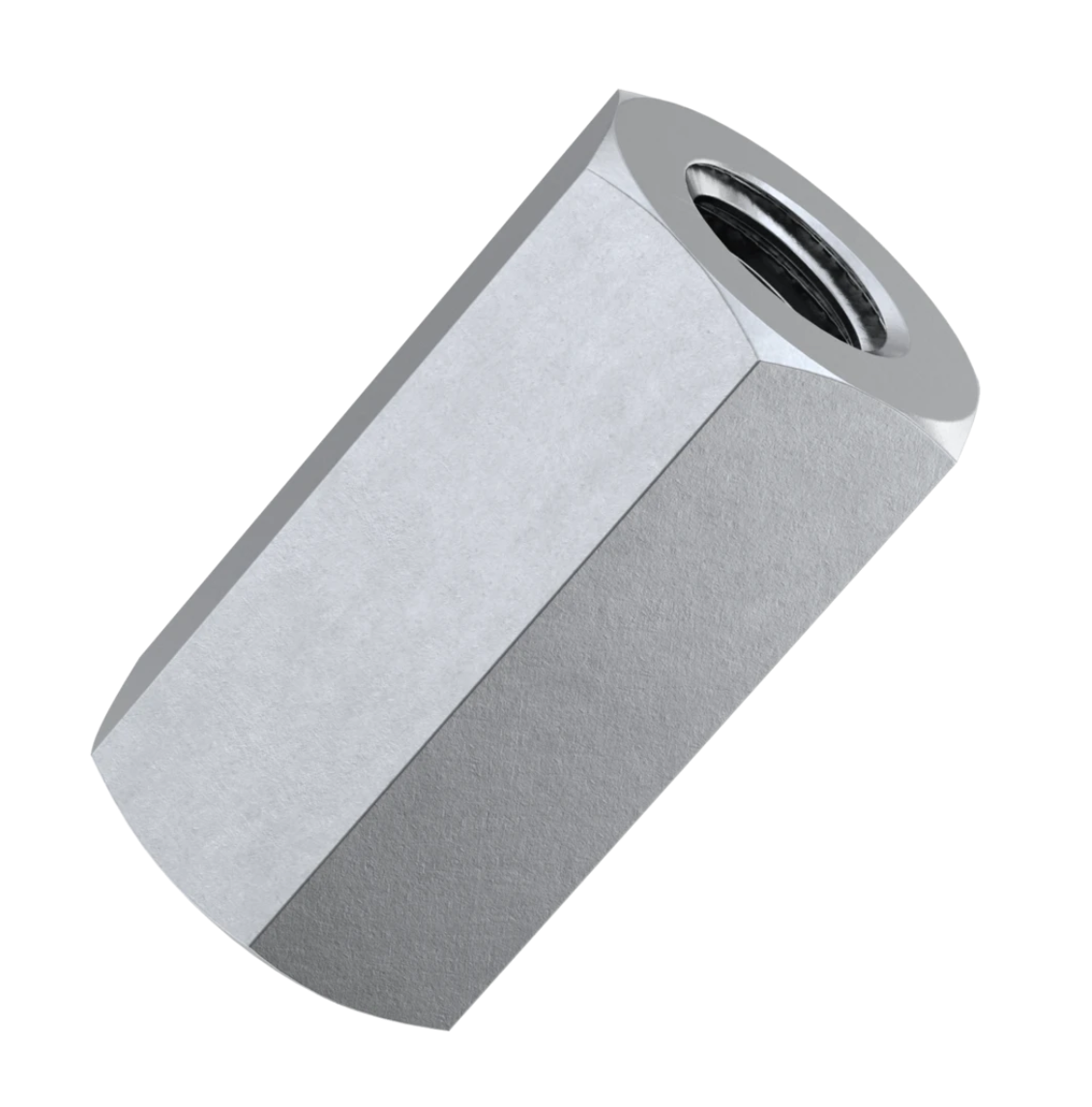 DIN 6334 (JHS) - гайка-втулка соединительная. Длина гайки составляет, как правило, три диаметра резьбы. Соединительные гайки используются для удлинения, соединения резьбовых шпилек и штифтов соответствующего размера резьбы в различных сферах.