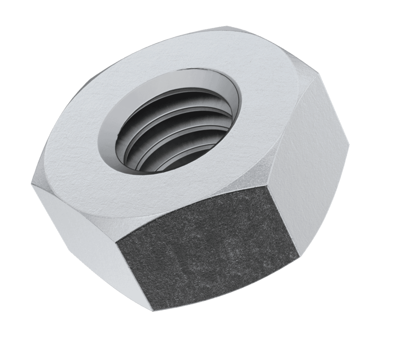 Производятся из углеродистой стали, нержавеющей стали А2 и А4, латуни, пластмассы. Высота гайки примерно 0,8d, где d — диаметр резьбы. Класс прочности 4, 5, 8, 10. В основном гайки из углеродистой стали электрооцинкованы, гайки больших размеров могут быть горячеоцинкованными.