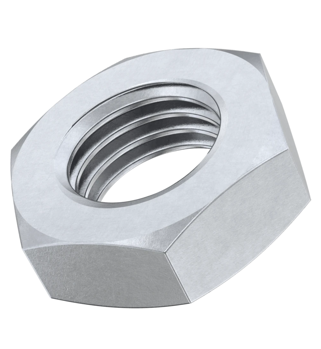 DIN 439B - гайка низкая шестигранная, имеет уменьшенную высоту (примерно 0,5d) по сравнению со стандартной гайкой DIN 934. Малая высота таких гаек позволяет использовать их в изделиях с ограниченным пространством под крепежные элементы. Не применяются в соединениях, работающих на срез (из-за малого количества витков резьбы). Зато часто выполняют роль контргайки.Производятся из углеродистой стали, нержавеющей стали А2 и А4, латуни. Класс прочности гаек из углеродистой стали 04 и 05. Покрытие: электрооцинкованные, желтопассивированные.