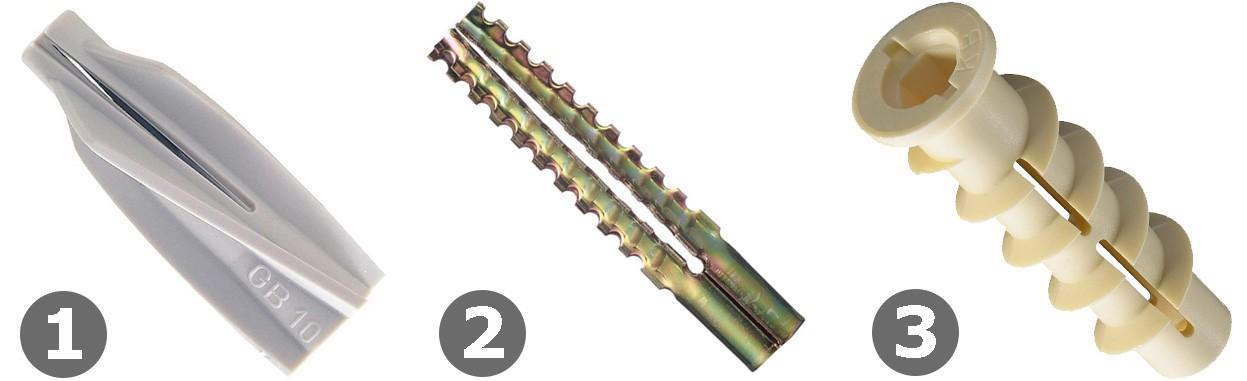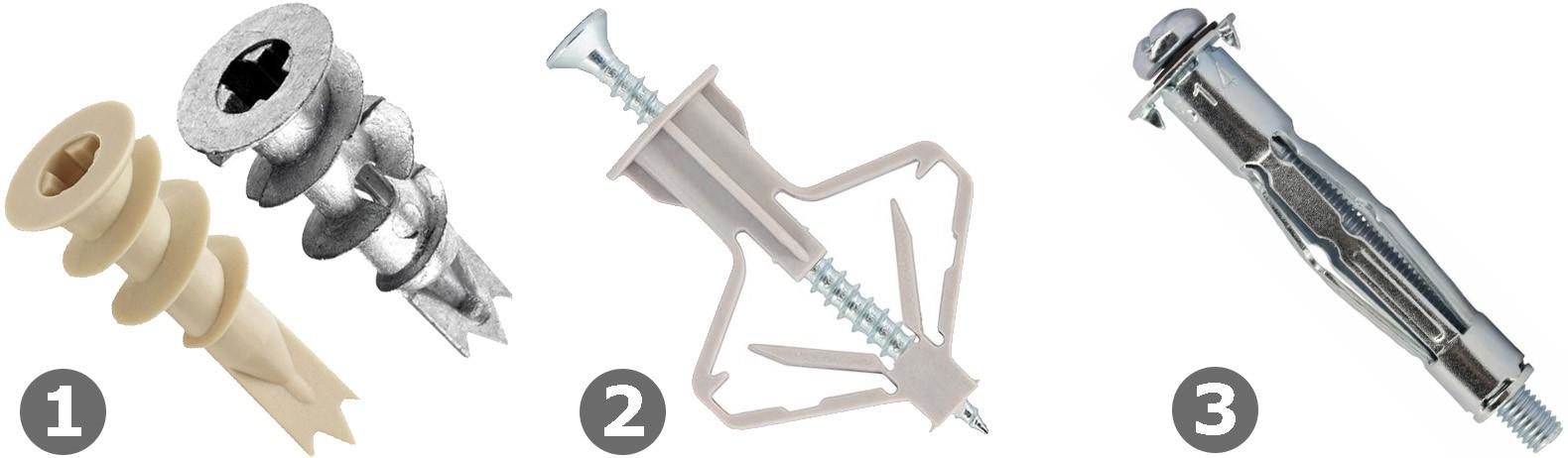 Панельные строительные материалы (ДСП, гипсокартон и др.) в основном тонкостенные и имеют низкую прочность. Здесь подходят специальные дюбели для гипсокартона и пустотелых оснований, которые вкручиваются в материал или крепятся непосредственно к задней части панели в полости.