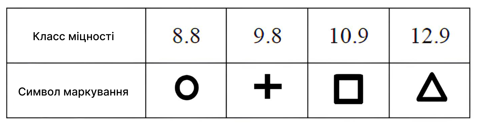 - Для стали углеродистой: класс прочности до 5.6 — не окрашивается, 8.8 — желтый, 10.9 — белый.