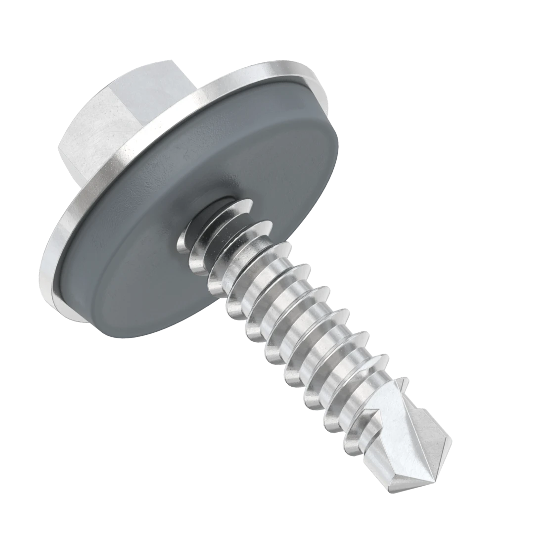 Шайба из металла, устойчивого к ржавчине (обычно это алюминий или сталь). Она помогает распределять давление на материал, когда засверливают саморез. Благодаря этому EPDM-уплотнитель не покрывается трещинами, а на профнастиле или металлочерепице не остаётся вмятин (конечно, если вы не перетянули саморез).