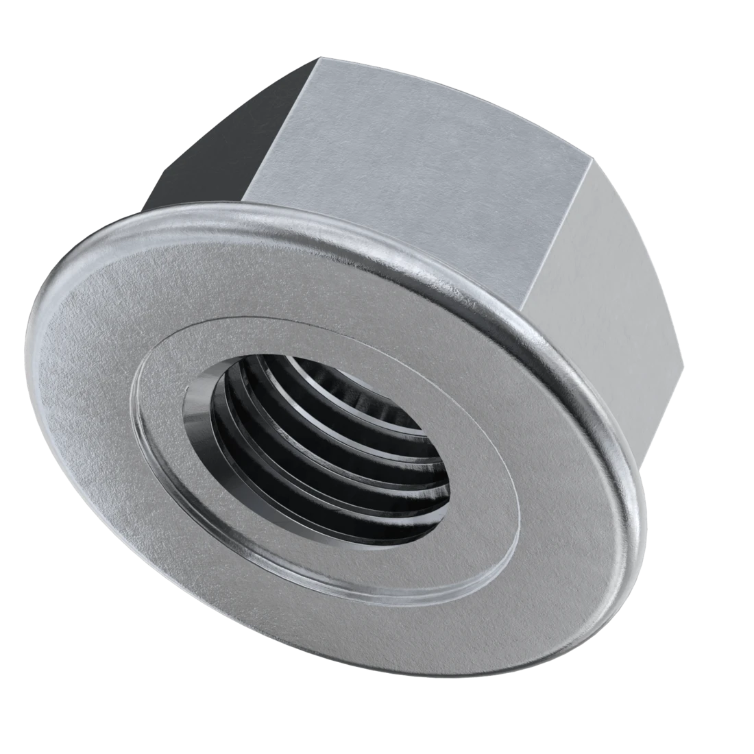 Гайка с фланцем DIN 6923 изготовлена из углеродистой конструкционной стали высокого качества и термически закалена до прочности, соответствующей классу 6,8 и 10.