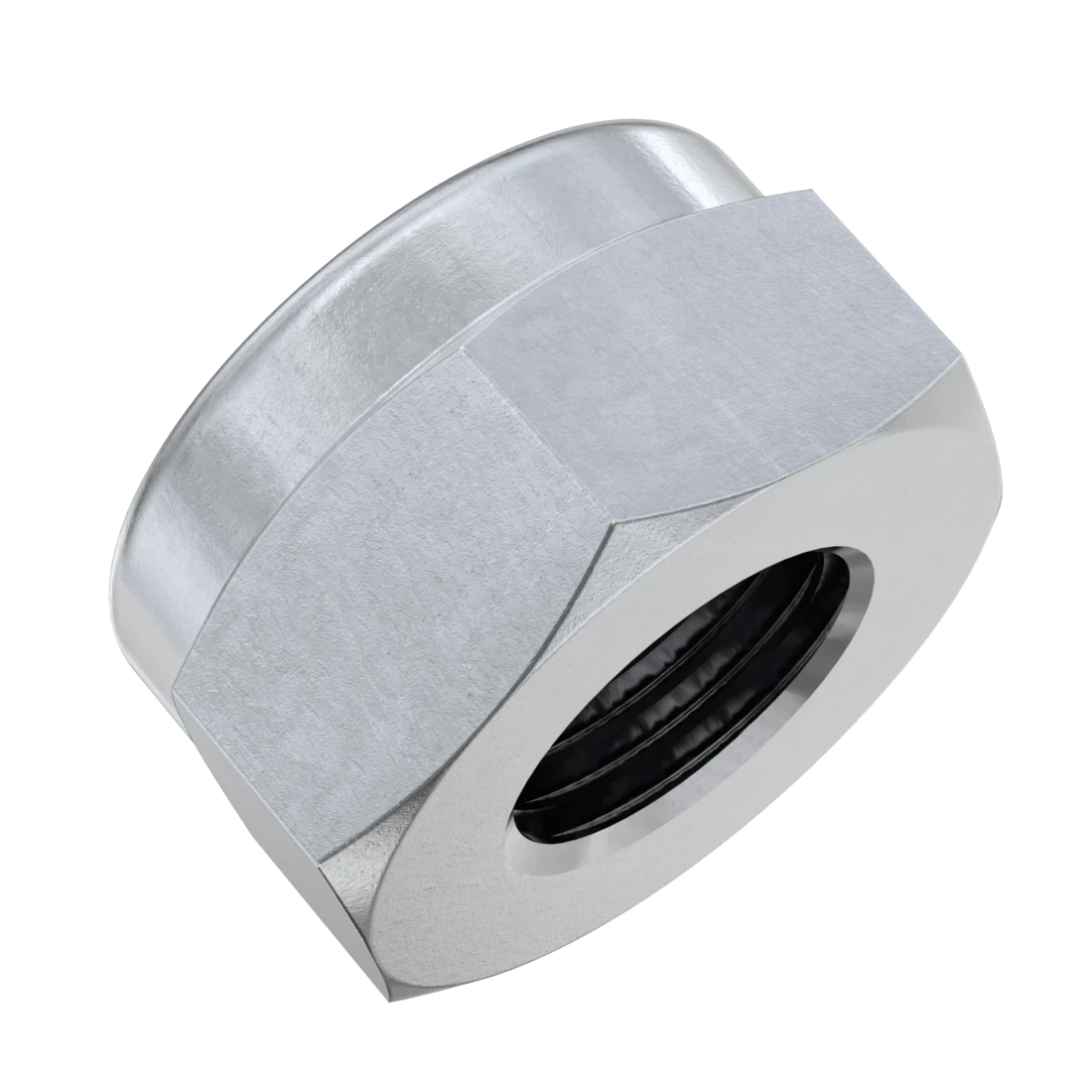 DIN 6924 - гайка шестигранная самоконтрящаяся c неметаллическим вкладышем, диаметр резьбы от М3 до М48.