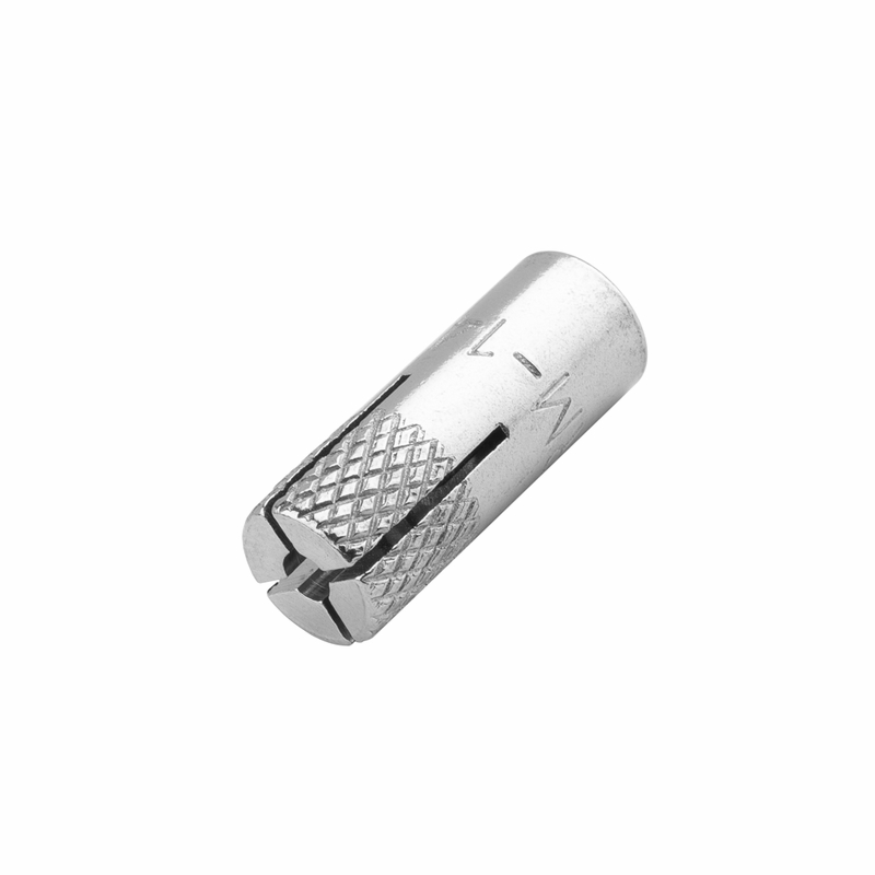 Забивной нержавеющий анкер представляет собой металлическую втулку, отличительные части которой: внутренняя метрическая резьба и расклиниваемая зона для использования в дуэте со шпилькой, винтов или болтом.