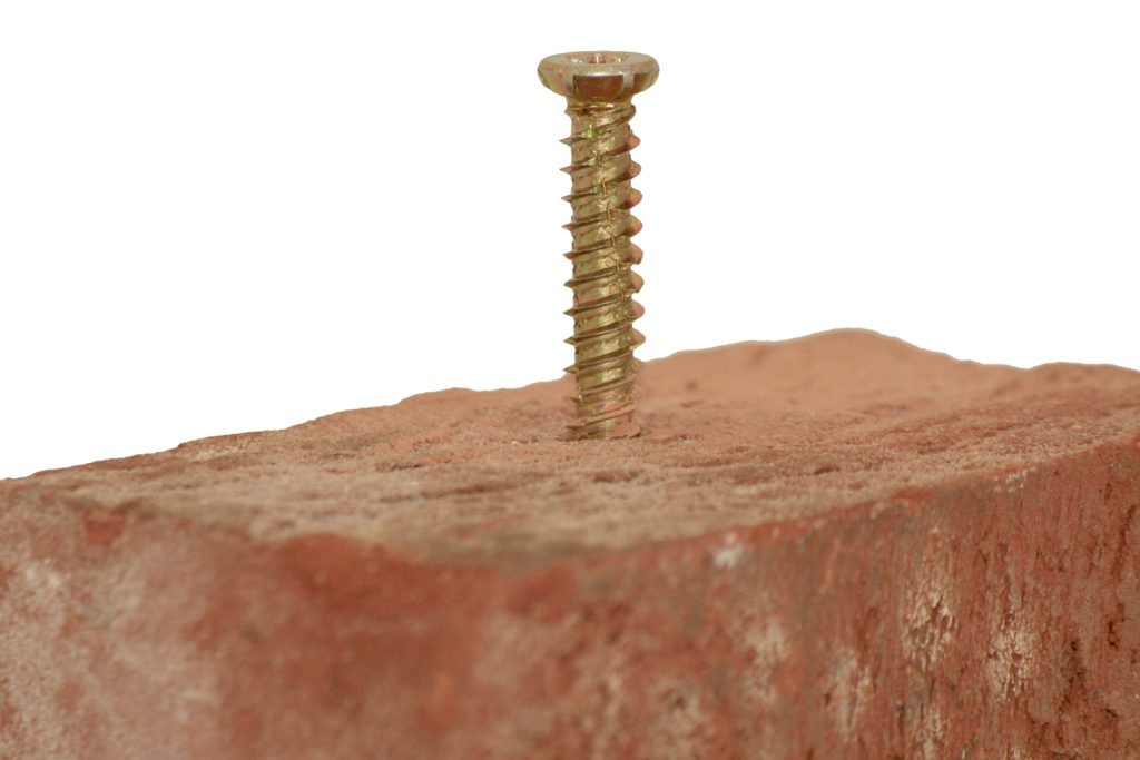 Твердая поверхность шурупа позволяет ему легко входить в отверстие в бетоне и прорезать твердую его структуру.